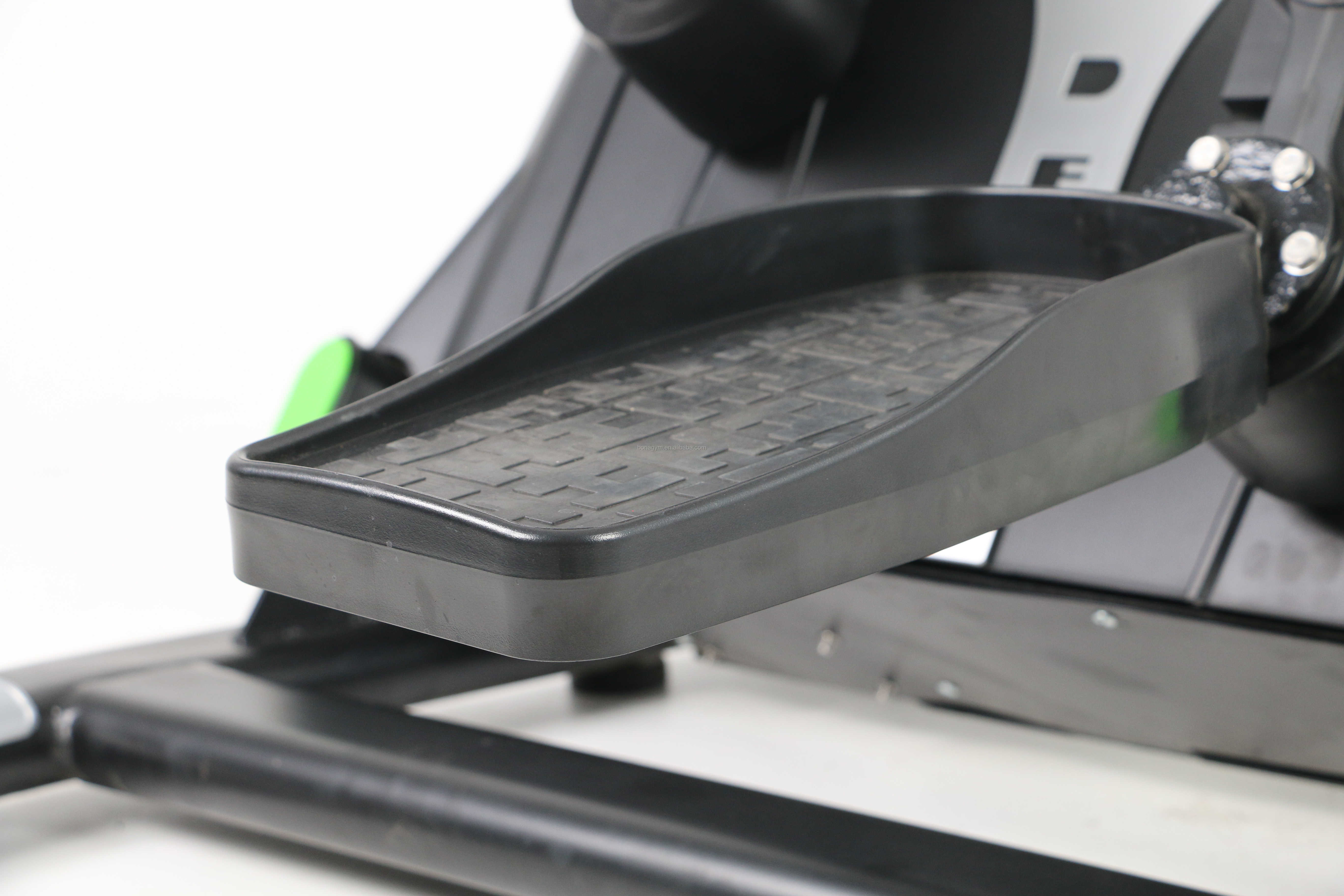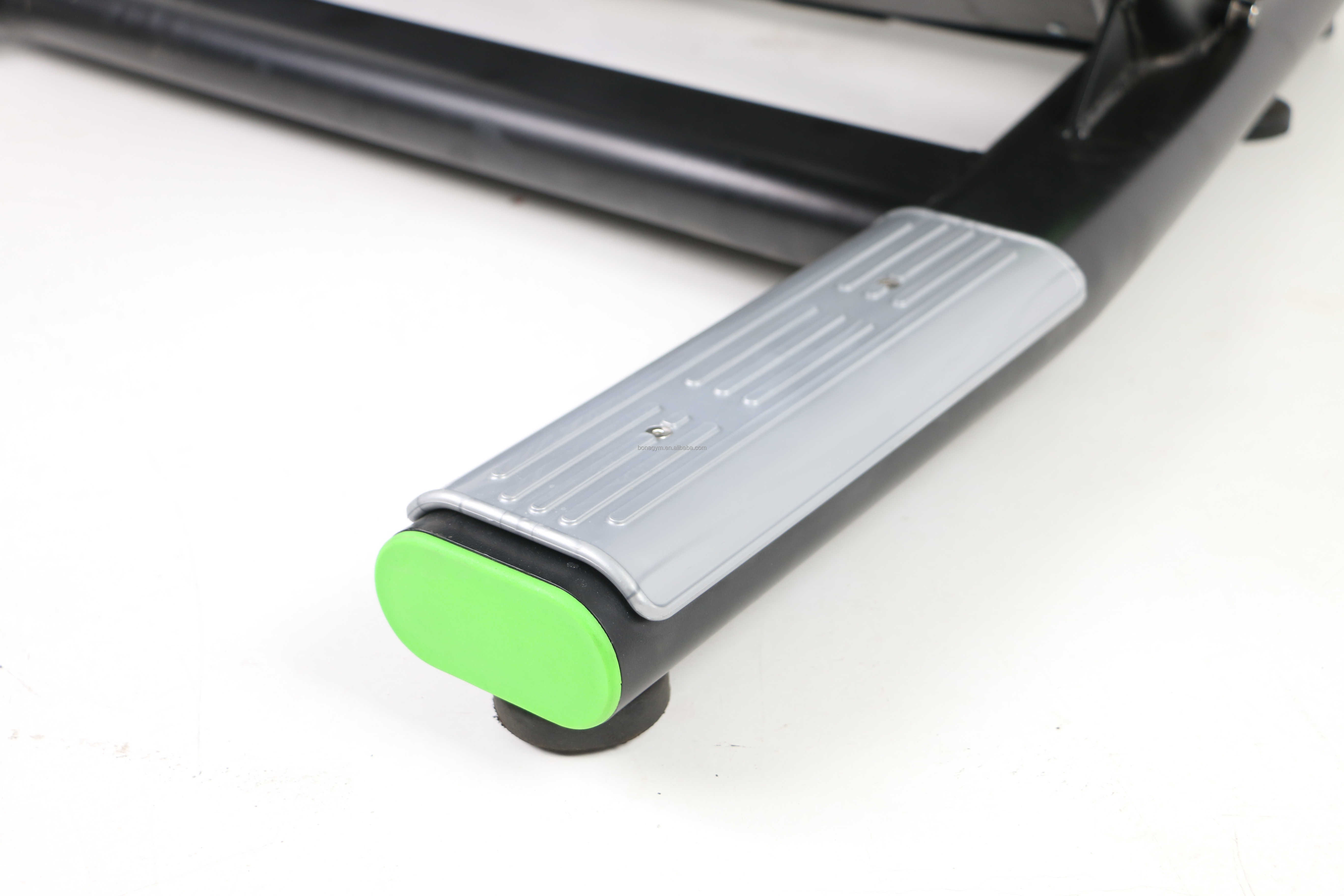 This is the base support part of the fitness equipment. It features a silver textured pedal for stepping, a green anti-slip end cap, and a black rubber foot pad. This design ensures stability during use, prevents slipping, and reduces noise and wear, providing a secure and comfortable foundation for the equipment.