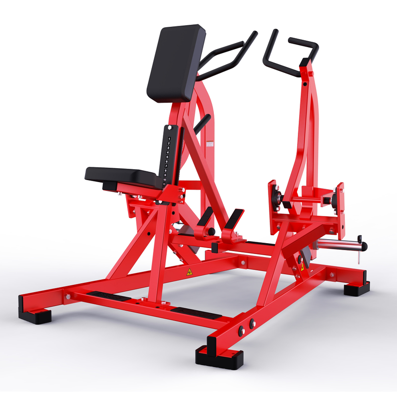 Its iso-lateral (independent arm) design lets users train each side of the back separately, fixing strength imbalances while engaging lats, rear delts, and biceps. The plate-loaded resistance system (compatible with standard weight plates) allows flexible intensity adjustments, and the padded seat/backrest ensure stability and comfort during rows. Built with a sturdy red steel frame, it’s ideal for gyms aiming to deliver efficient, balanced upper-body strength development.