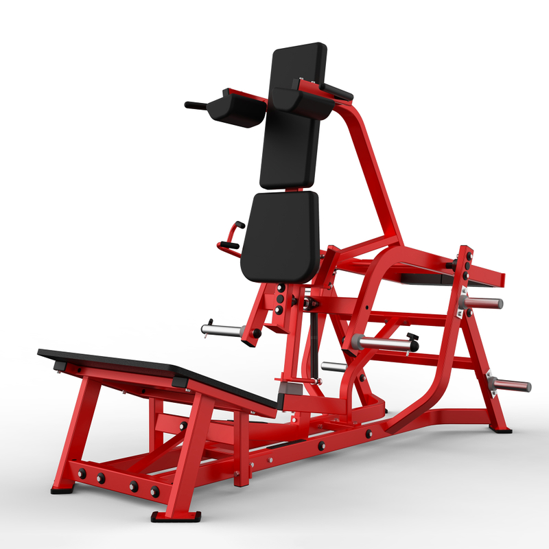 Designed for targeted quad, glute, and hamstring training, its V-shaped footplate and adjustable backrest support proper squat form (reducing knee/back strain). The plate-loaded design lets users adjust resistance easily, while the sturdy red frame ensures stability during heavy lifts. Ideal for gyms, it delivers efficient, safe lower-body strength development for all fitness levels.