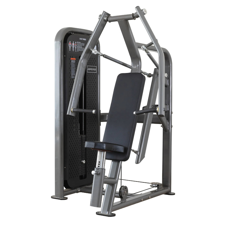 Ergonomic Adjustable Seat: Padded design with height adjustability to fit users of different statures, ensuring comfort and proper biomechanical alignment during chest press exercises.