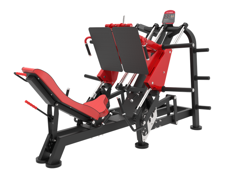 Independent foot platforms allow users to train both legs evenly or focus on unilateral movements to correct muscle imbalances. The plate-loaded system offers flexibility for athletes and advanced users who require higher resistance levels.